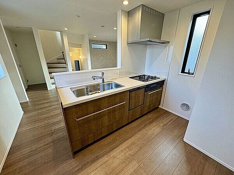 LDKには対面式キッチン採用。1坪サイズのバスルームには浴室乾燥機付き。