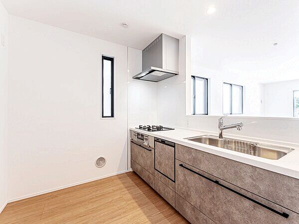 並列駐車2台可能。LDKは18畳。食洗機や浴室乾燥機付の新築分譲住宅です。