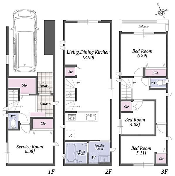 | 間取り | 3LDK+S | 建物構造 | 木造、地上3階建て |