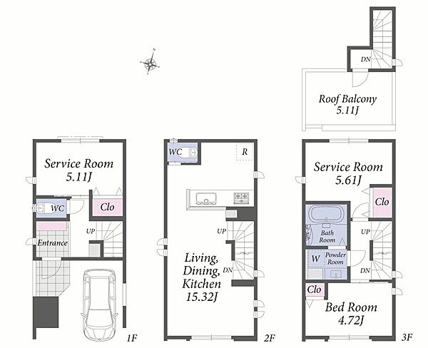 | 間取り | 1LDK+2S | 建物構造 | 木造、地上3階建て |