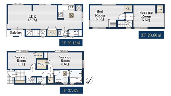 - 1LDK+3S~2LDK+2S