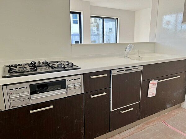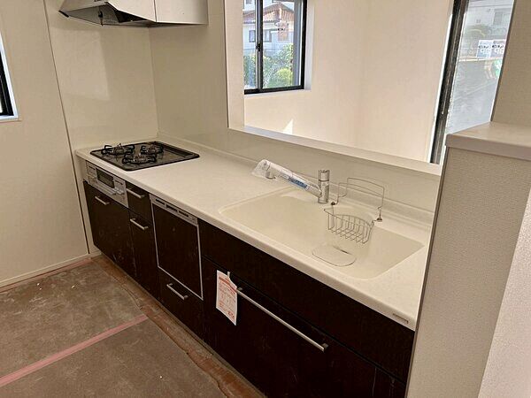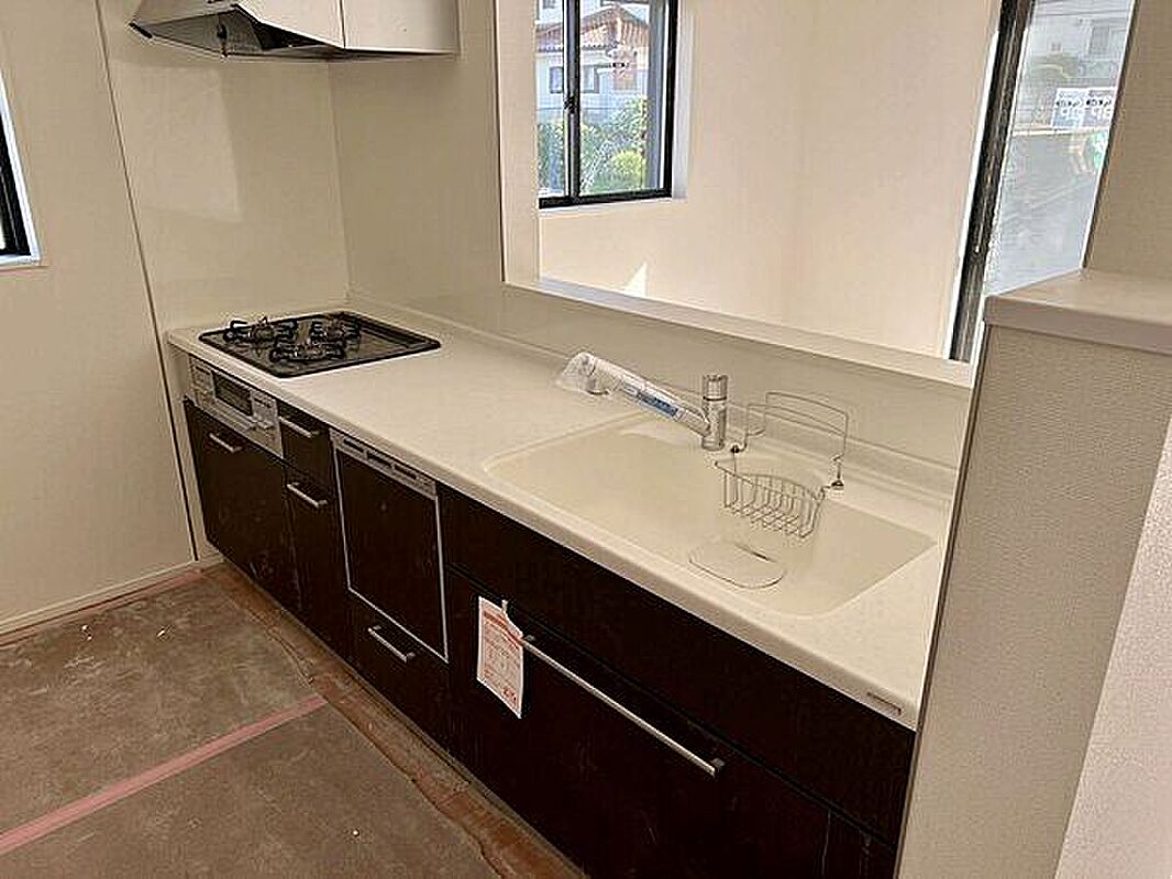 食洗機や浴室乾燥機などの設備充実。角地につき開放感のある新邸です。