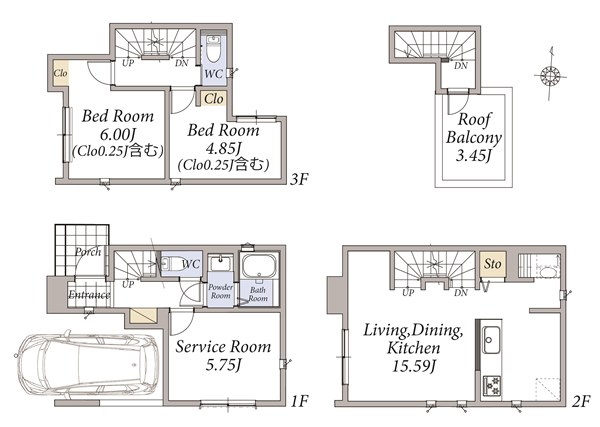 | 間取り | 2LDK+S | 建物構造 | 木造、地上3階建て |
