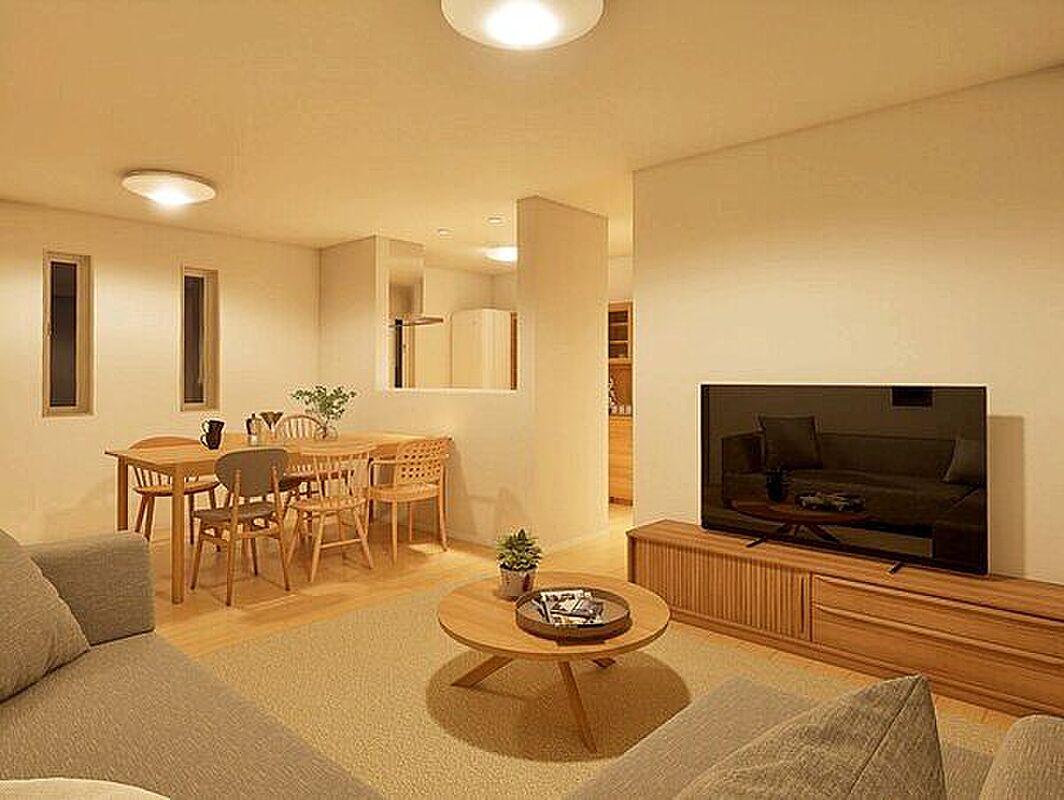ご家族で集まるLDKは広々18畳以上。全居室収納付きの新築分譲住宅です。
