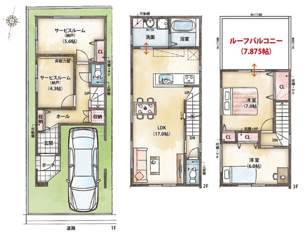 | 間取り | 2LDK+S~2LDK+2S | 建物構造 | 木造、地上3階建て |
