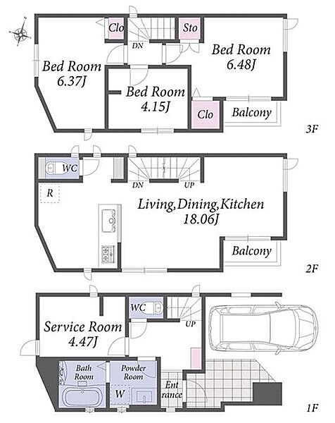 | 間取り | 3LDK+S | 建物構造 | 木造、地上3階建て |