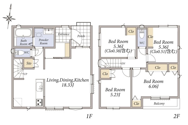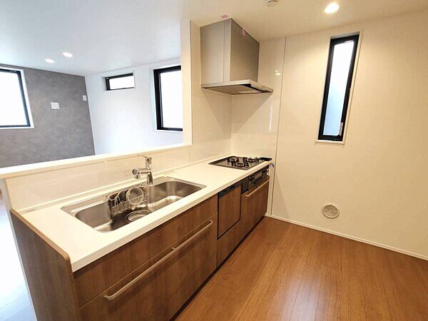 家族の集まるLDKは18畳。対面式キッチン採用の2階建て新築分譲住宅です。
