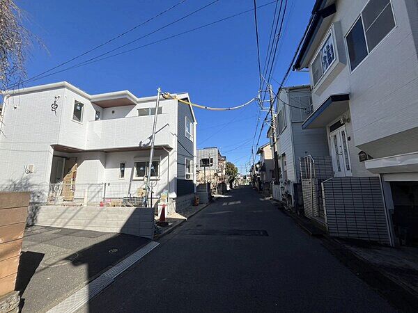 低層エリアの穏やかな住環境に誕生する、東南側道路に面した2階建ての新邸。