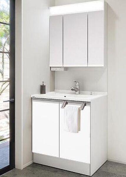 バスルームには浴室乾燥機採用。対面式キッチンを設けた新築分譲住宅です。