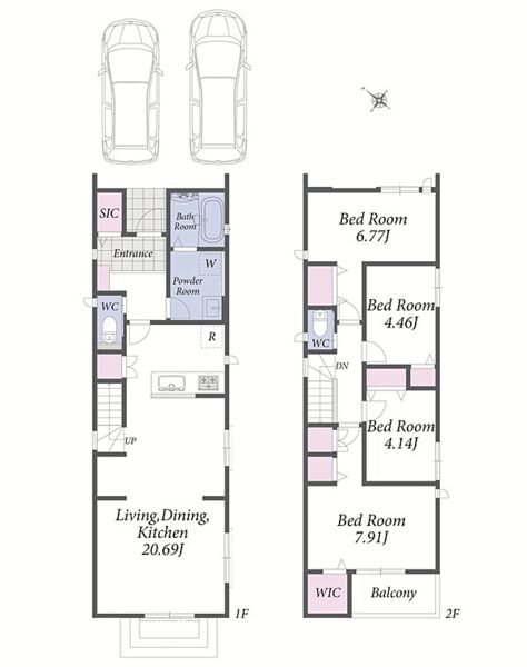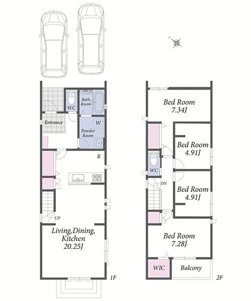 LDKは広々20畳超。並列2台駐車可能な2階建て新築分譲住宅です。