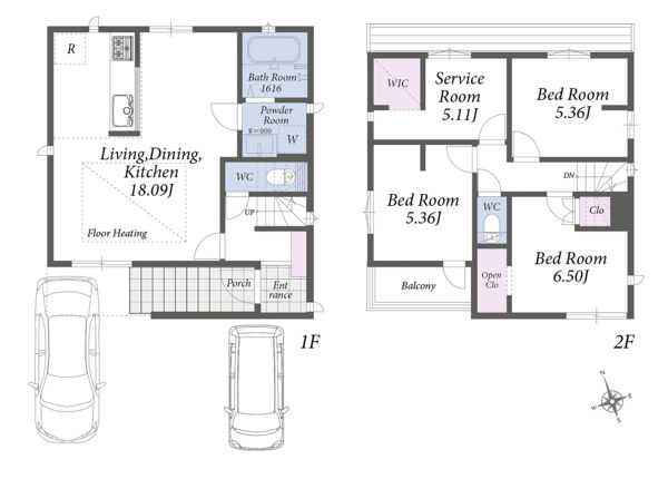 | 建物面積 | 84.46m2~87.63m2 | 土地面積 | 91.64m2~102.37m2 |