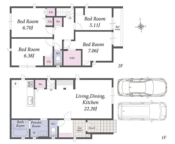 | 建物面積 | 106.43m2~106.69m2 | 土地面積 | 112.14m2~112.42m2 |