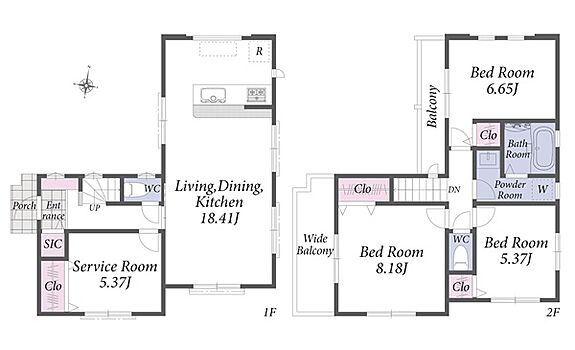 LDK18畳+主寝室8畳の広々とした住空間。並列駐車2台可能な新邸です。