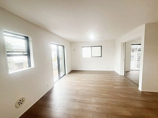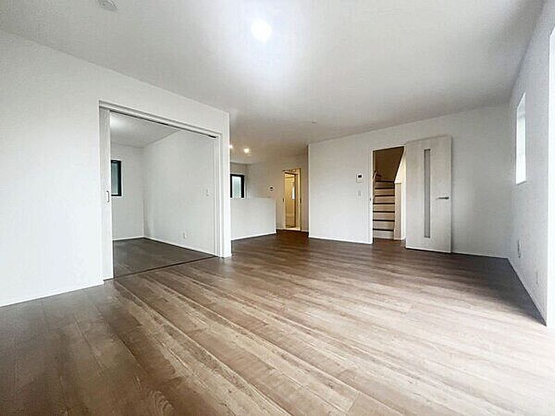 対面式キッチン採用のLDKは20畳と広々。並列駐車2台可能の新邸です。