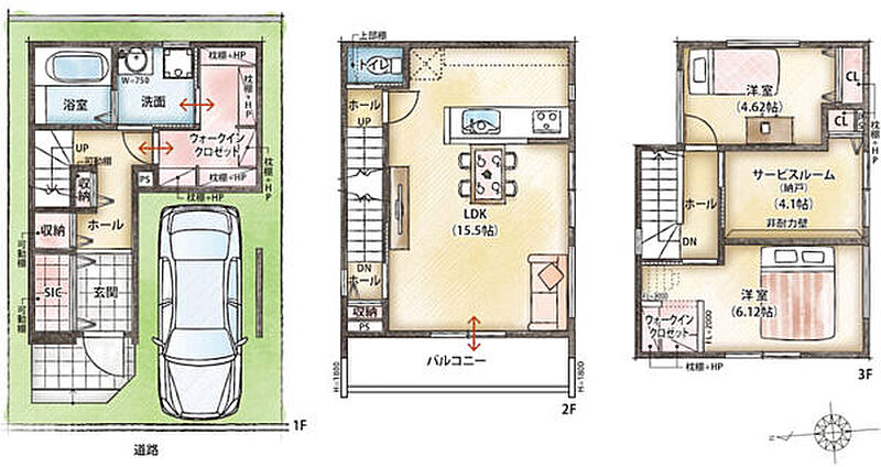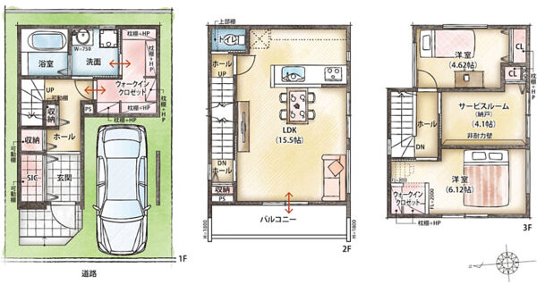 | 間取り | 2LDK+S | 建物構造 | 木造、地上3階建て |