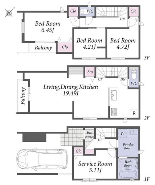 | 間取り | 3LDK+S | 建物構造 | 木造、地上3階建て |