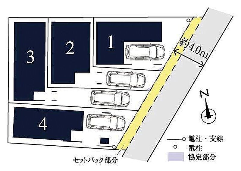 | 備考 | 一部路地部30~37%含/一部車庫等13.24~16.04m2含/一部ポーチ等0.62~1.19m2含/準防火地域/通路提供部分0.22m2含(1・2号棟)/敷地内電柱有(1・4号棟)/私道部分4.82m2/管理番号:585716 | ||