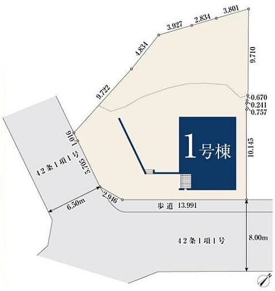 | 駐車場 | 1台(有/1台(1号棟)) | 道路の幅員 | 6.5m~8m |