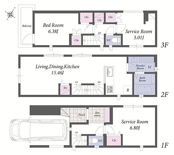 | 間取り | 1LDK+2S | 建物構造 | 木造、地上3階建て |