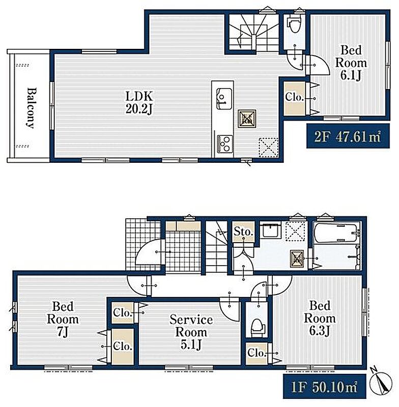 全居室収納付き。広々とした20畳のLDKには対面式キッチン採用の新邸です。