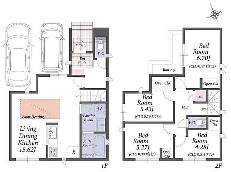 バスルームには浴室乾燥機採用。2台駐車可能なカースペース付き新築分譲住宅。