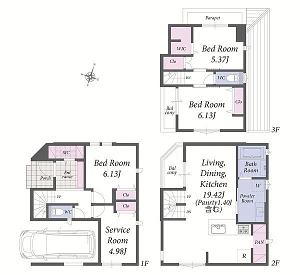 | 間取り | 3LDK+S | 建物構造 | 木造、地上3階建て |