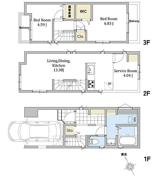 | 間取り | 2LDK+S | 建物構造 | 木造、地上3階建て |