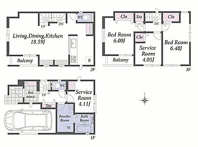| 間取り | 2LDK+S~2LDK+2S | 建物構造 | 木造、地上3階建て |