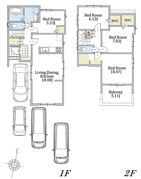 1階に広々18畳のLDK。お車4台駐車可能な2階建ての新築分譲住宅です。