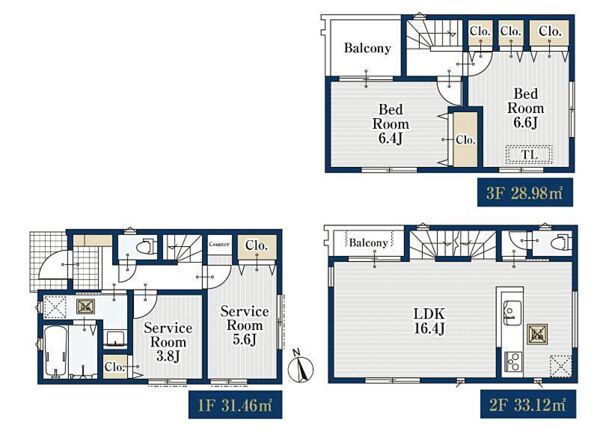 | 建物面積 | 93.56m2 | 土地面積 | 81.10m2~81.31m2 |