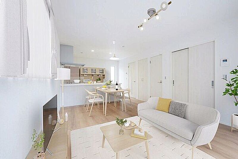 LDKには対面式キッチンを採用。全室収納付きの2階建て新築分譲住宅です。