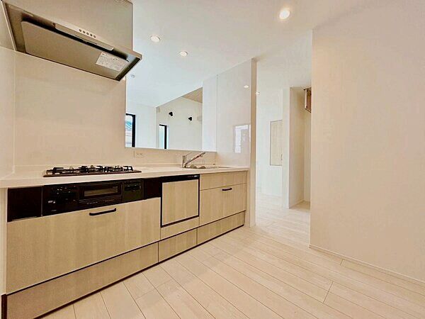 家族がくつろぐLDKはゆとりある17畳超。2階建ての新築分譲住宅です。
