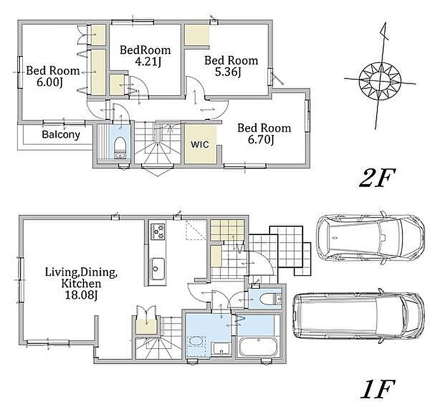 浴室はゆったり1坪サイズ。並列2台駐車可能なカースペース付き新築分譲住宅。