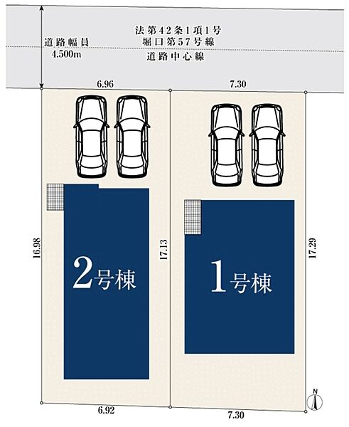| 駐車場 | 2台(有/2台(1・2号棟)) | 道路の幅員 | 4.5m |
