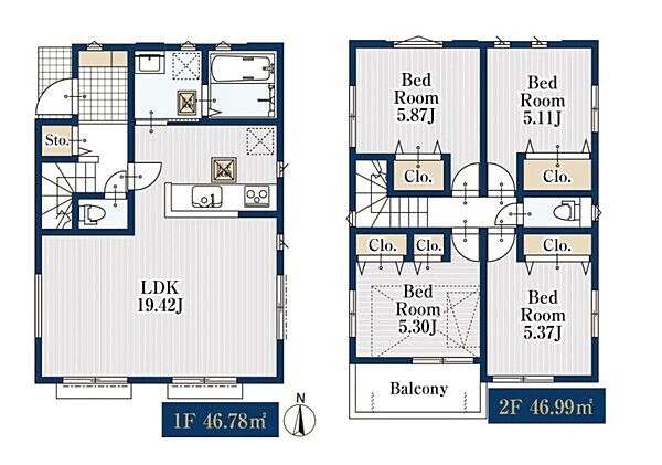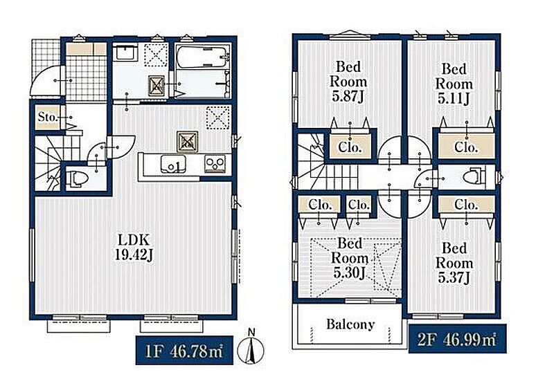 | 建物面積 | 91.08m2~93.77m2 | 土地面積 | 118.44m2~125.67m2 |