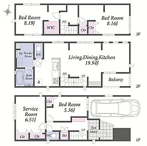 | 間取り | 2LDK+S~3LDK+S | 建物構造 | 木造、地上2~3階建て |