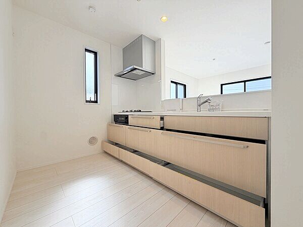ご家族が集まるLDKは広々18畳。4台並列駐車可能な新築分譲住宅です。