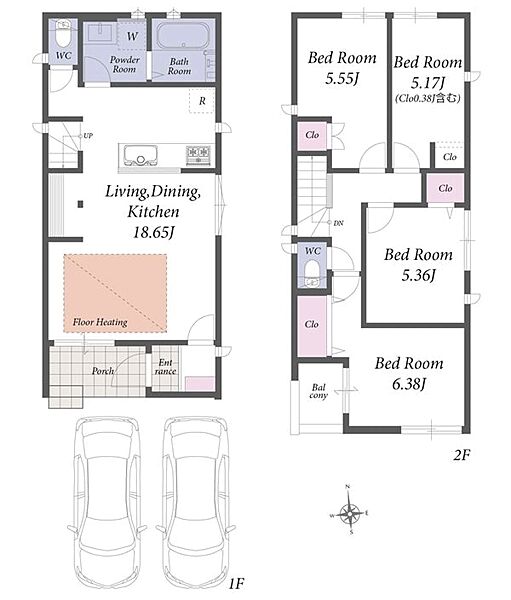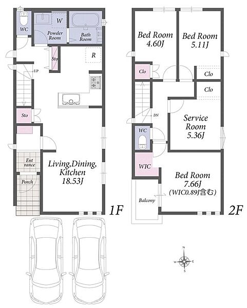 並列駐車2台可能。食洗機や浴室乾燥機などの設備が充実した新築分譲住宅です。