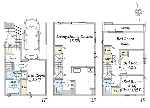 | 間取り | 3LDK+S~4LDK | 建物構造 | 木造、地上3階建て |