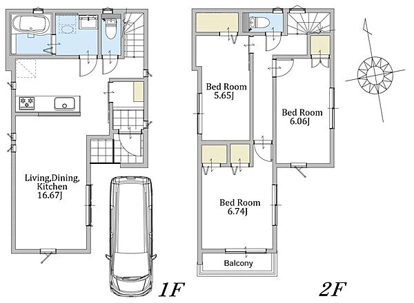 間口6.7mの整形地。南側道路に面した2階建ての新邸です。