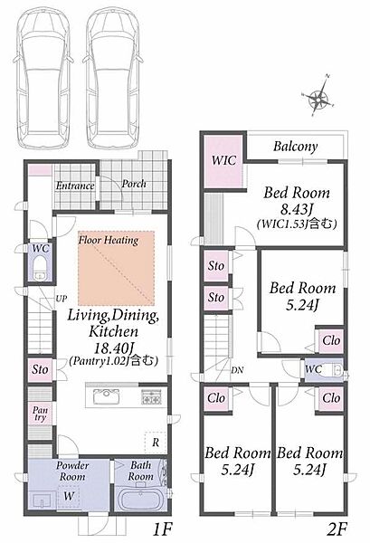 並列駐車2台可能。収納に便利なウォークインクローゼット付きの新築戸建です。