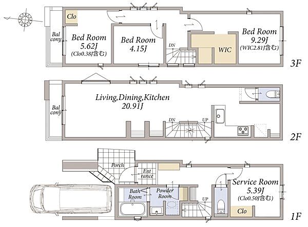 | 間取り | 3LDK+S | 建物構造 | 木造、地上3階建て |