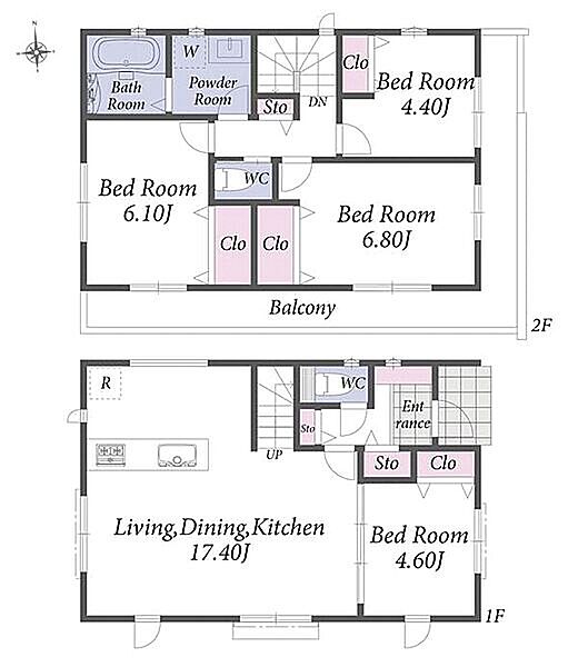 全居室収納付の2階建て新築分譲住宅。「恋ケ窪」駅から徒歩6分の立地です。