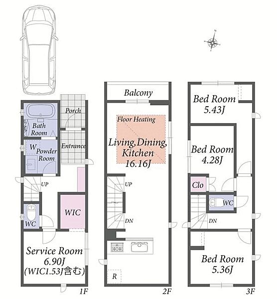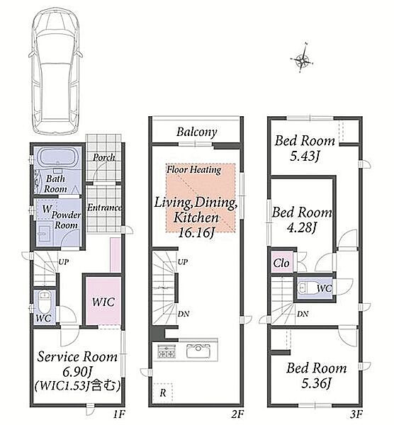 | 間取り | 3LDK+S | 建物構造 | 木造、地上3階建て |