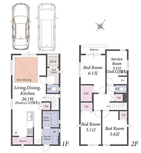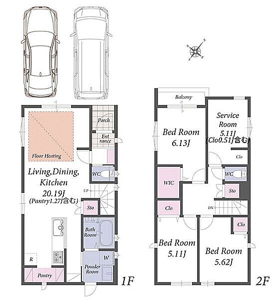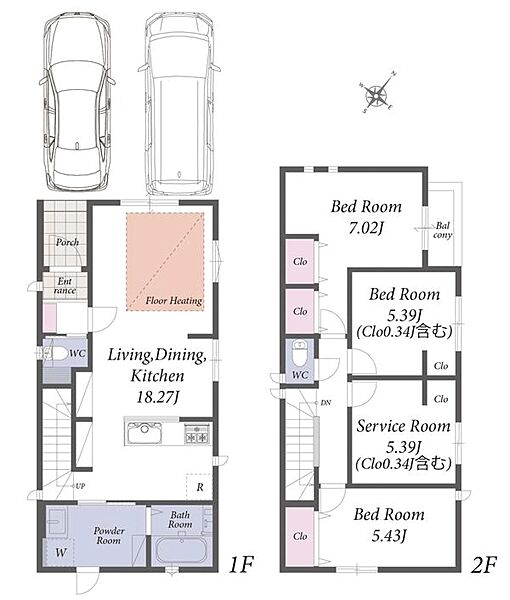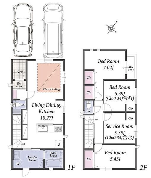1階LDKは広々18畳で床暖房付き!カースペース2台の新築分譲住宅です。