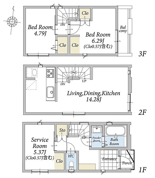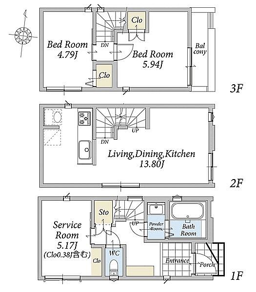 | 間取り | 2LDK+S | 建物構造 | 木造、地上3階建て |