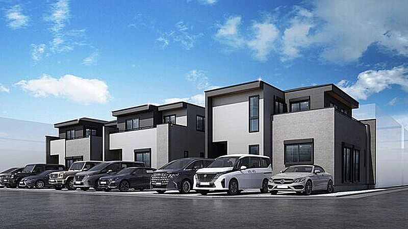 並列駐車3台可能。土地・建物面積共に100m2以上の新築分譲住宅です。