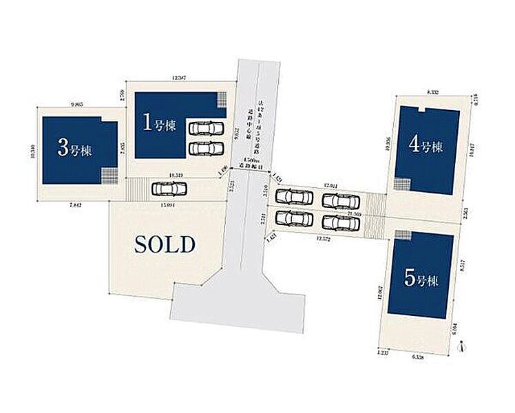 | 駐車場 | 1台 ~ 2台(有/1台(3号棟)、有/2台(5号棟)) | 道路の幅員 | 4.5m |