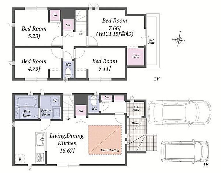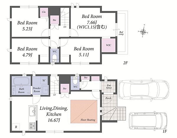 並列駐車2台可能。食洗機・浴室乾燥機等の設備が充実した新築住宅です。