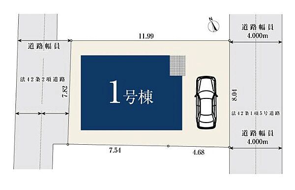 | 駐車場 | 1台(有/1台(1号棟)) | 道路の幅員 | 2.9m~4m |